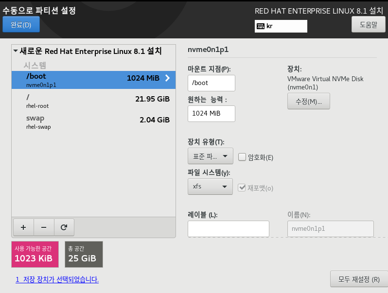 원하는 설정 완료 후 설치 시작으로 OS 설치 진행