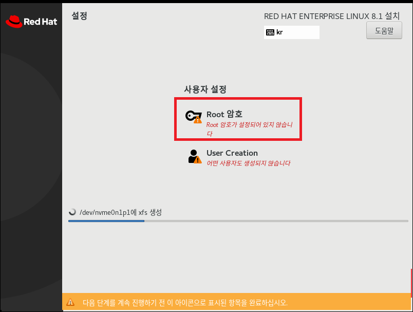 root 암호 설정 , user 사용자를 생성하지 않을 것이여서 설정하지 않겠습니다
