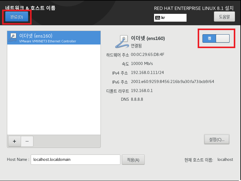 - 네트워크 및 호스트 설정