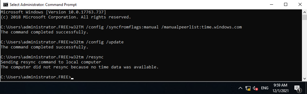w32tm /config /syncfromflags:manual /manualpeerlist:time.windows.com