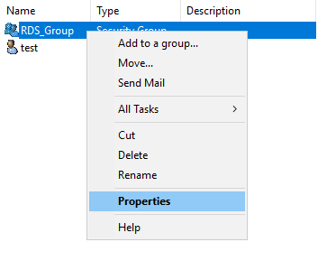 18) RDS_Group 우클릭 후 Properties(속성)을 누릅니다