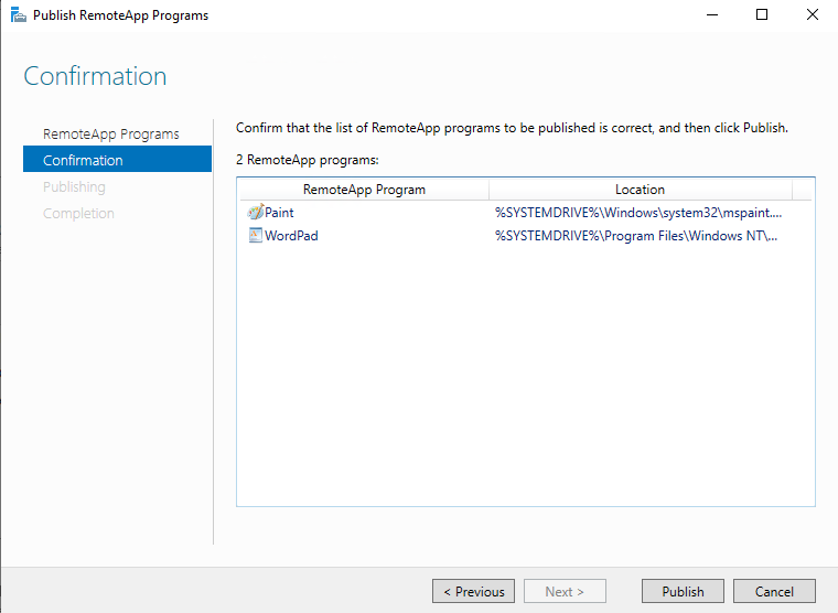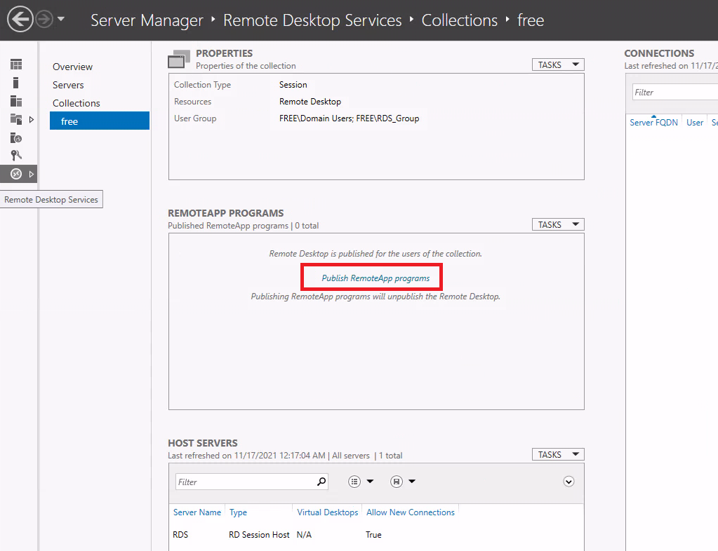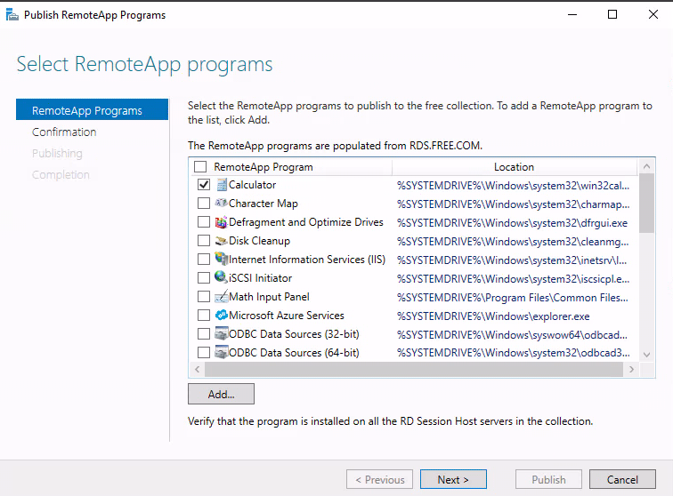 52) 생성한 컬렉션으로 이동해서 Publish RemoteApp programs를 선택합니다.