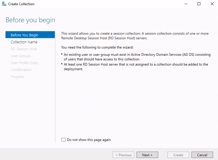 44) Remote Desktop Services 진입 후 Create session collections 선택하세요