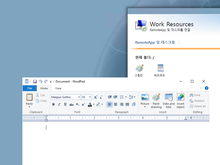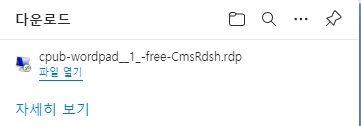 59) 예를 들어 워드패드를 누르면 rdp파일이 다운로드되고 이 파일을 실행시킵니다.