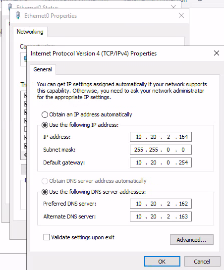 1) RDS(Remote Desktop Service)로 사용할 서버에 고정 IP를 설정해주고, DNS에 AD서버 주소를 입력합니다.