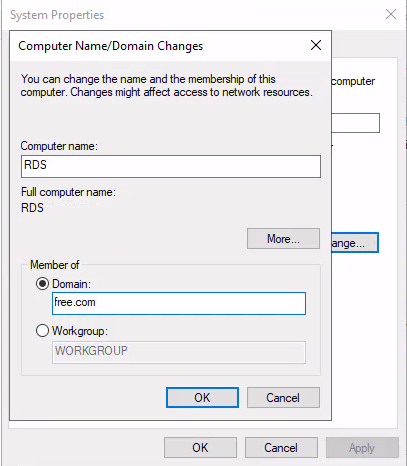 2) 컴퓨터 이름을 변경해주고, 도메인에 가입합니다.