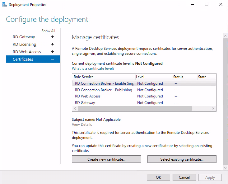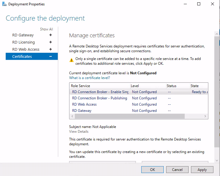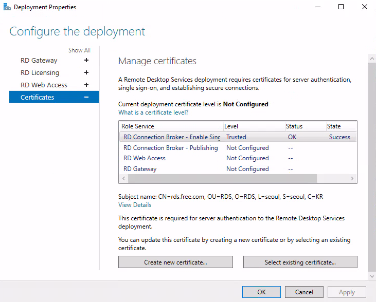 ** 실제 구매한 인증서로 사용시 RD게이트웨이만 일치시켜주면 도메인 Join없이 remote app 바로 사용 가능합니다. **