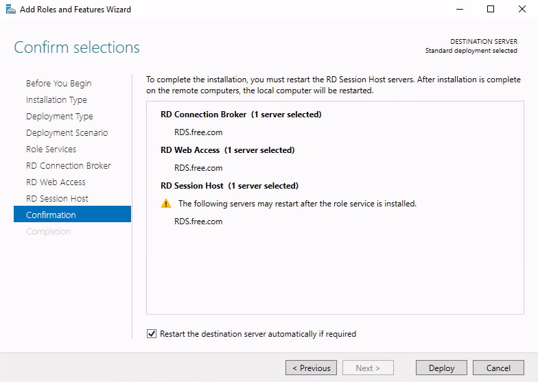 21) Remote Desktop Services installation(원격 데스크톱 설치)를 선택합니다.