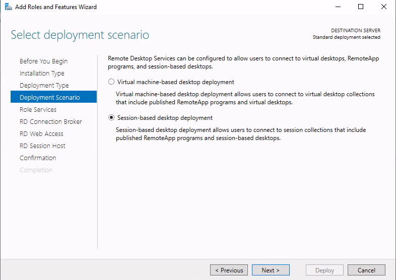23) Session-based desktop deployment(세션 기반 데스크톱 배포)를 선택합니다.