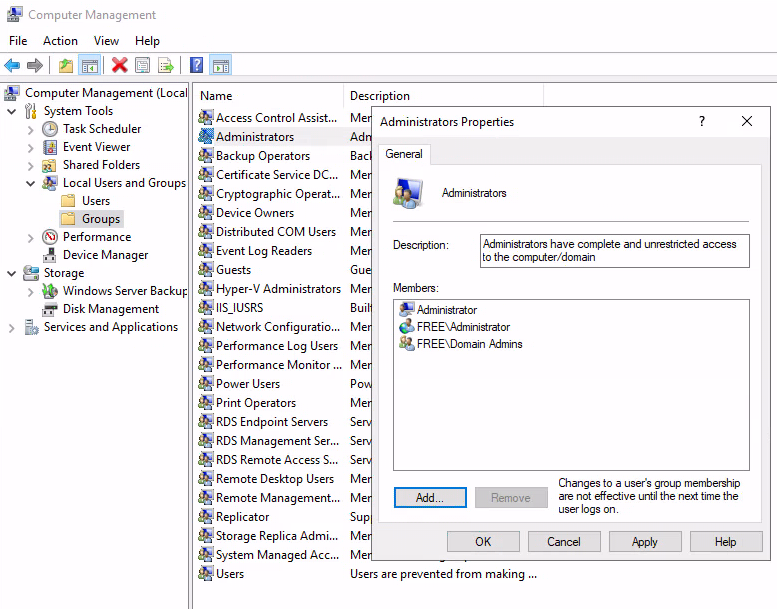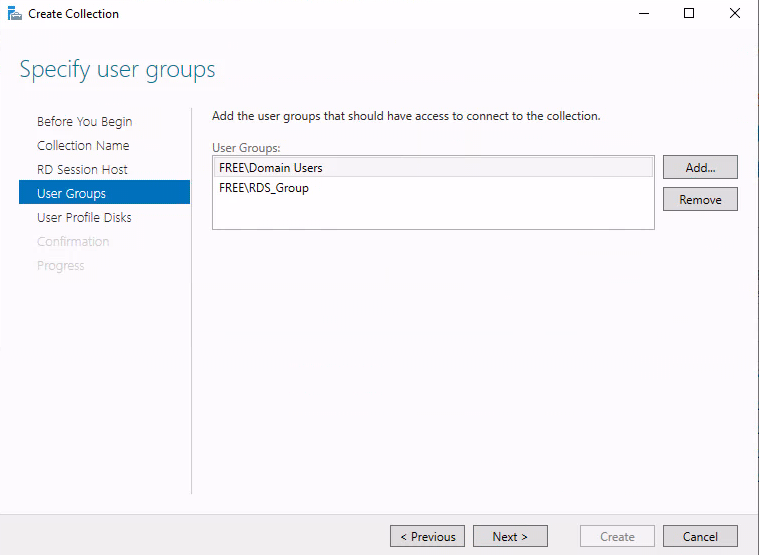 50) 컬렉션 프로필 디스크 사용을 위해 로컬 관리자 그룹 구성원에 사용할 그룹, 구성원을 추가합니다.