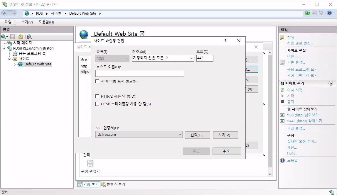 56) Internet Information Services (IIS) Manager(IIS 인터넷 정보 서비스 관리자) Binding에서