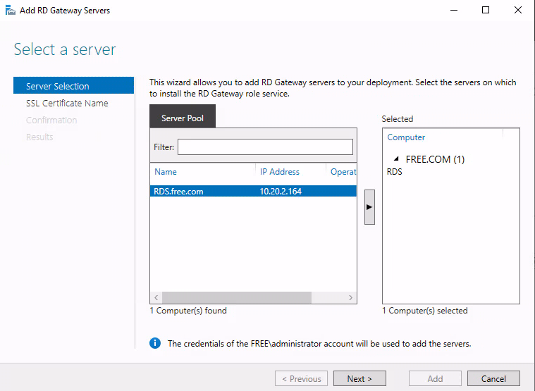 33) 내부 게이트웨이로 사용할 서버를 Server Pool에서 선택합니다.