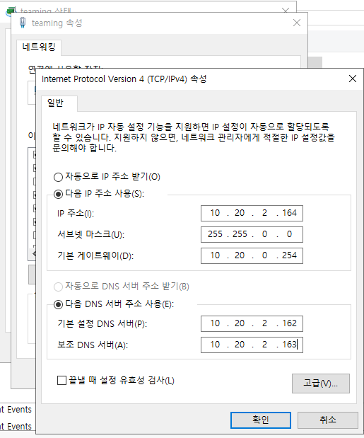Windows Teaming이란 리눅스에 Bonding처럼 네트워크를 다중화하여 서버의 안전성을 더 해주는 기능입니다.
