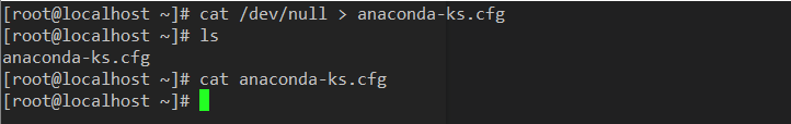 cat /dev/null > anaconda-ks.cfg 명령어 입력 후 파일은 유지되고,