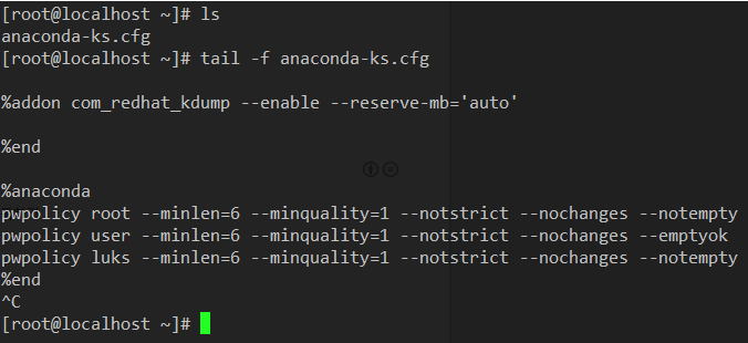 anaconda-ks.cfg 파일에 내용이 있음을 확인할 수 있습니다.